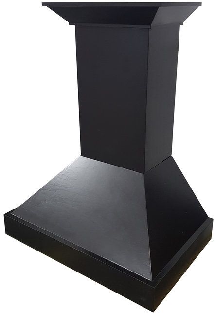 The ZLINE KBCC-36 is a 36 wall mount wooden range hood designed to be both elegant and powerful, featuring the industry's only lifetime warranty motor. The hand-finished painted black wood is made from solid pine with a stainless steel inner frame, making it both durable and long-lasting. This durable construction, along with ZLINE's lifetime warranty on the motor, guarantees a range hood that will last for a lifetime. This classic wooden hood contains many modern features, such as: Hand-carved, hand-finished wood; Dishwasher-safe stainless steel baffle filters; Built-in LED lighting; High performance 4-speed motor with speeds up to 760 CFM. All ZLINE range hoods come equipped with everything needed to easily install and use, including a 24 inch chimney with crown molding. This hood will fit most ceilings up to 9.5 feet, though the chimney is designed to be cut to fit lower ceilings. ZLINE is the industry leader in wooden range hoods and stands by the quality and longevity of their wooden range hoods.